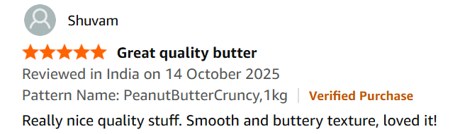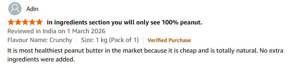 Most of its variants contain around 90% peanuts, with a small amount of added sugar. You get both creamy and crunchy options, with sizes ranging from 100g to 2.5kg. This makes it easy to choose based on your needs and budget.